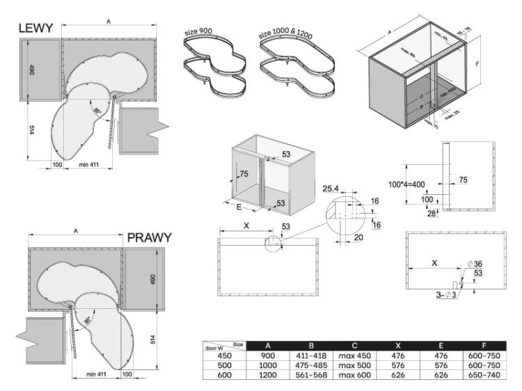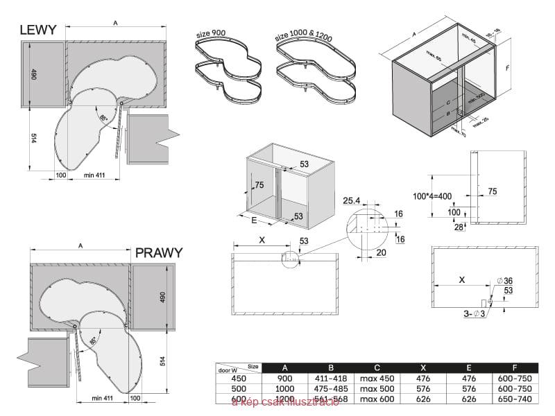 Kesseböhmer Dispensa előlaprögzítő 600mm Swing