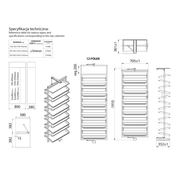 MG-WB-671X04P35 ATM cipőtartó WB-671x4 790-990 antracit 39738 |