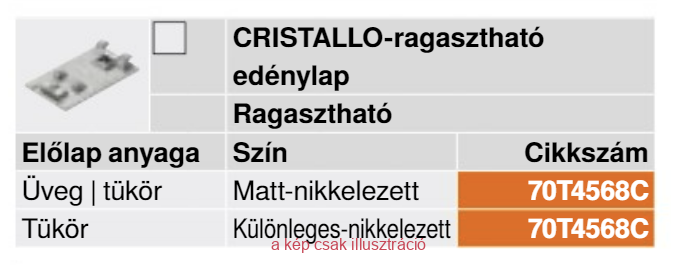 BLUM Kivetőpánt CRISTALLO ragasztható edénylap, ragasztható, négyszögletes, a üveg / tükör