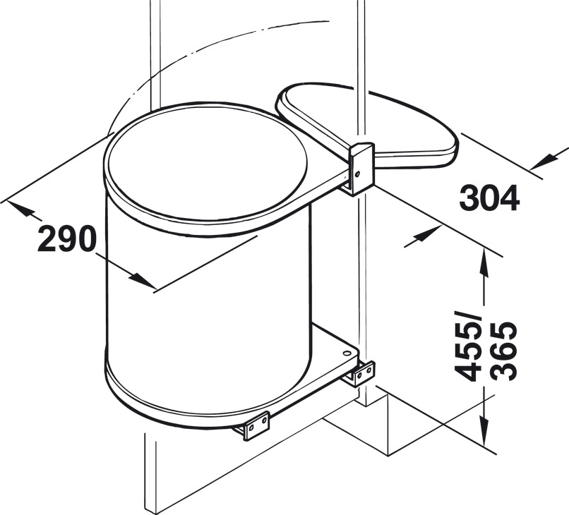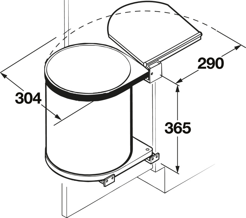 Szerelés csuklós ajtók mögé, oldalfalra és szekrényajtóra csavarozható, egyrészes hulladékgyűjtő, 15 literes, ≥400 mm szekrényszélességhez, acél, palaszürke